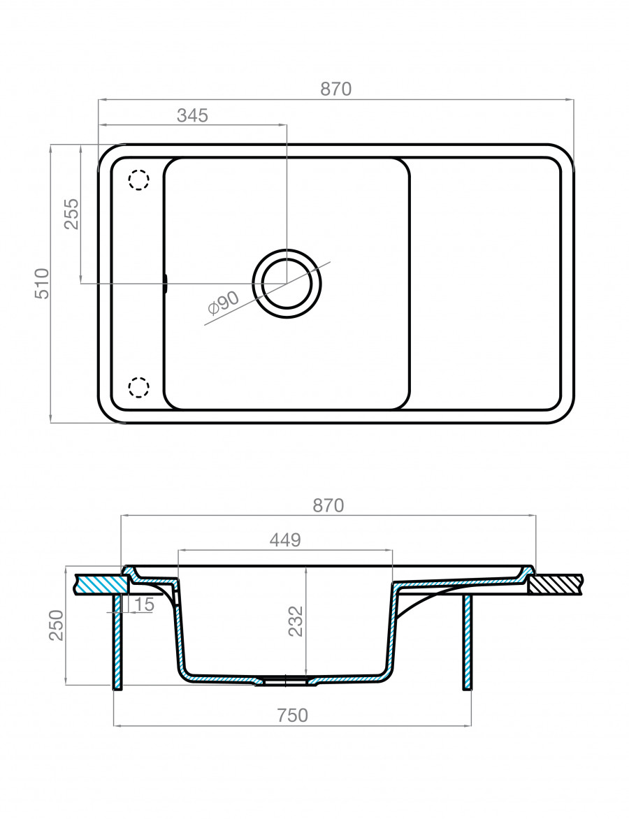 Мойка для кухни Беллис 87 870x510x250 мм, прямоуг., кофе