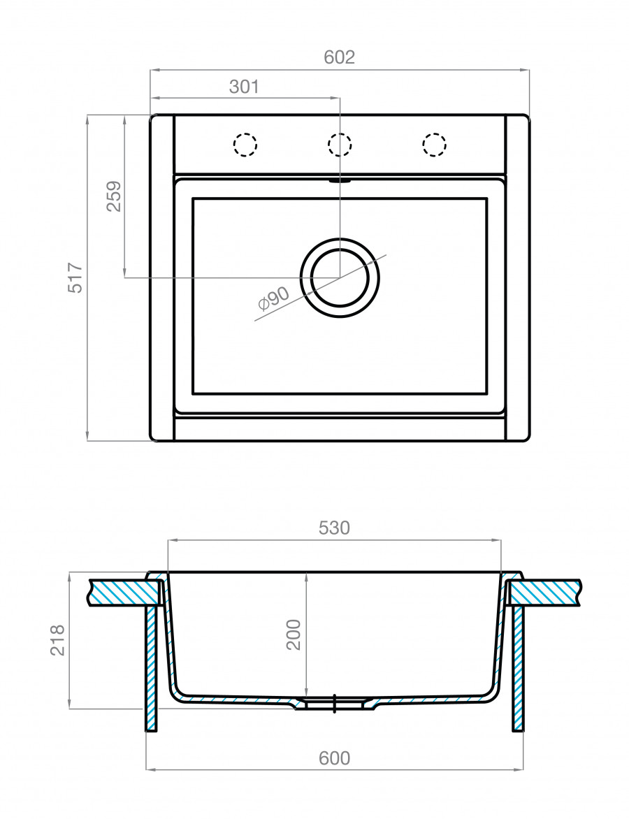 Мойка для кухни Делия 60 602х517х218 мм, графит