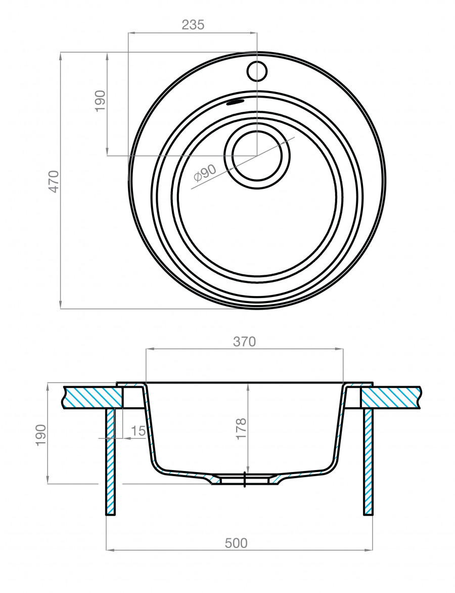 Мойка для кухни Иверия 480x480x190 мм,круглая, серый шёлк