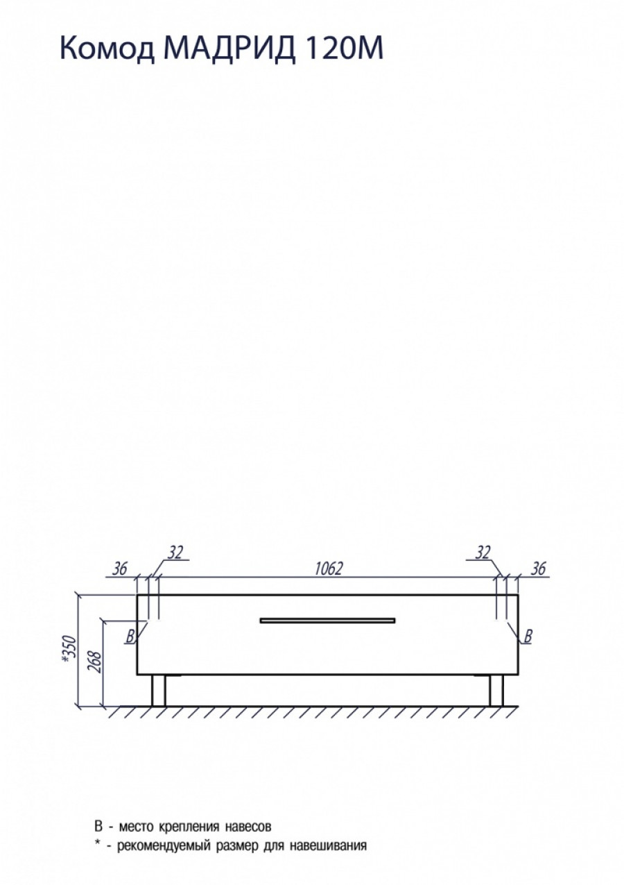 Комод МАДРИД 120 М, белый