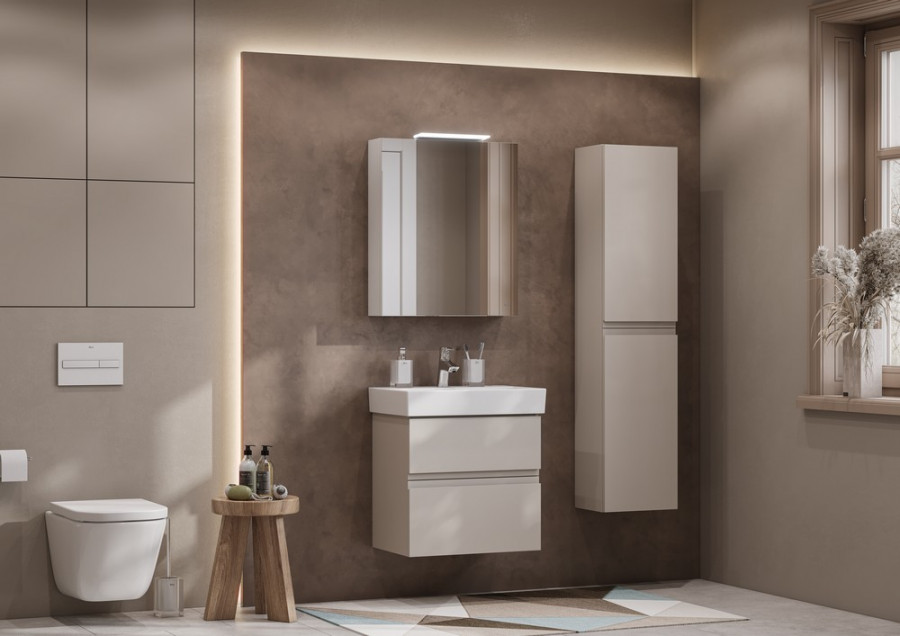 Дополняет комплект мебели OLETA шкаф-колонна в дизайне коллекции. Открытие фасадов осуществляется с помощью удобной профильной ручки. За фасадами, оснащенными петлями Hettich с плавным закрыванием, находятся регулируемые по высоте полочки из просветленного стекла. Внимание: началась замена артикулов с "7" на международный формат "A".