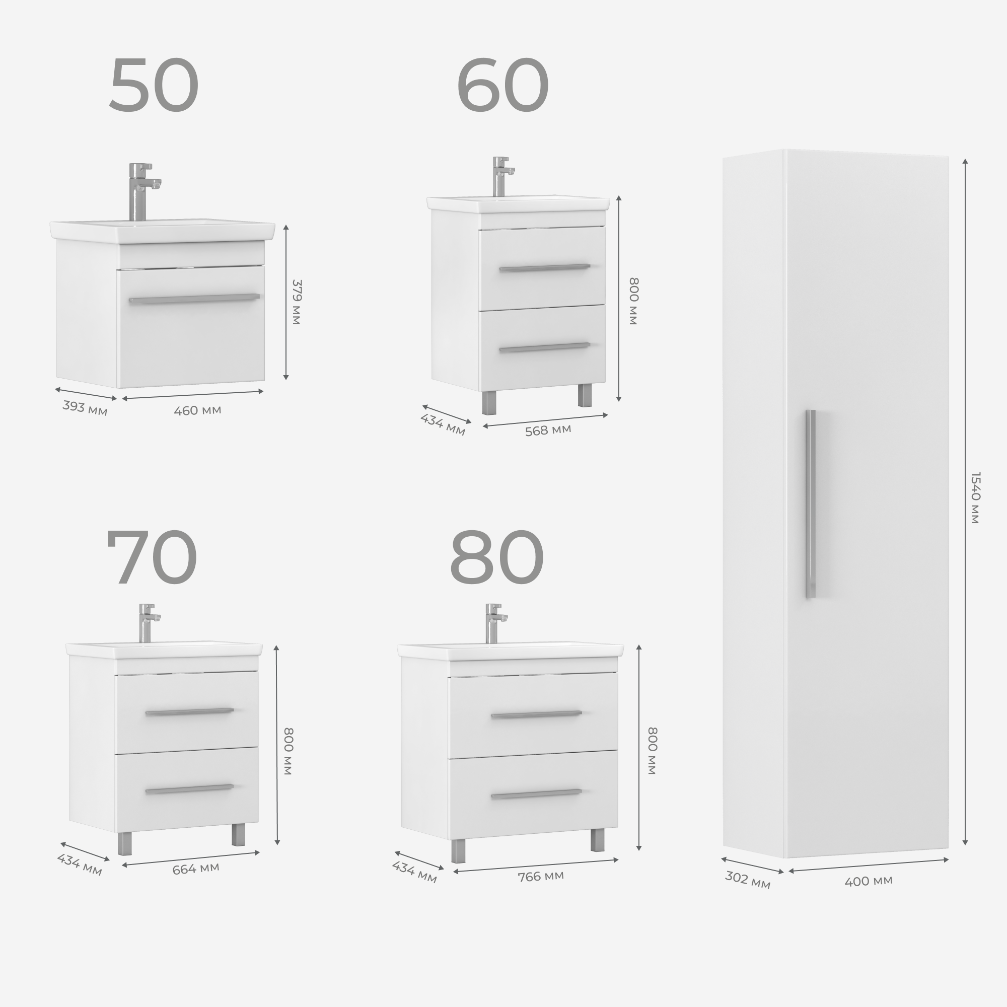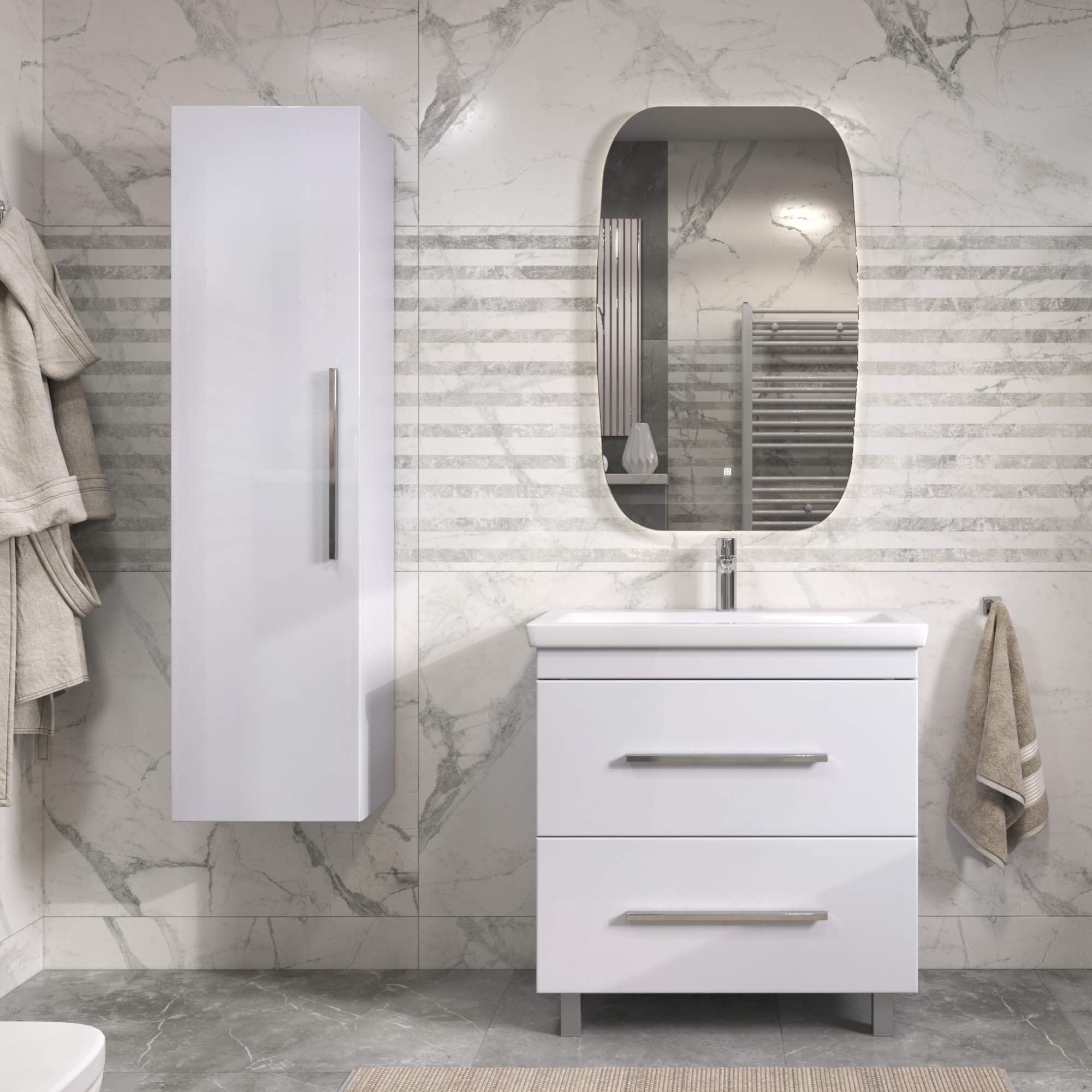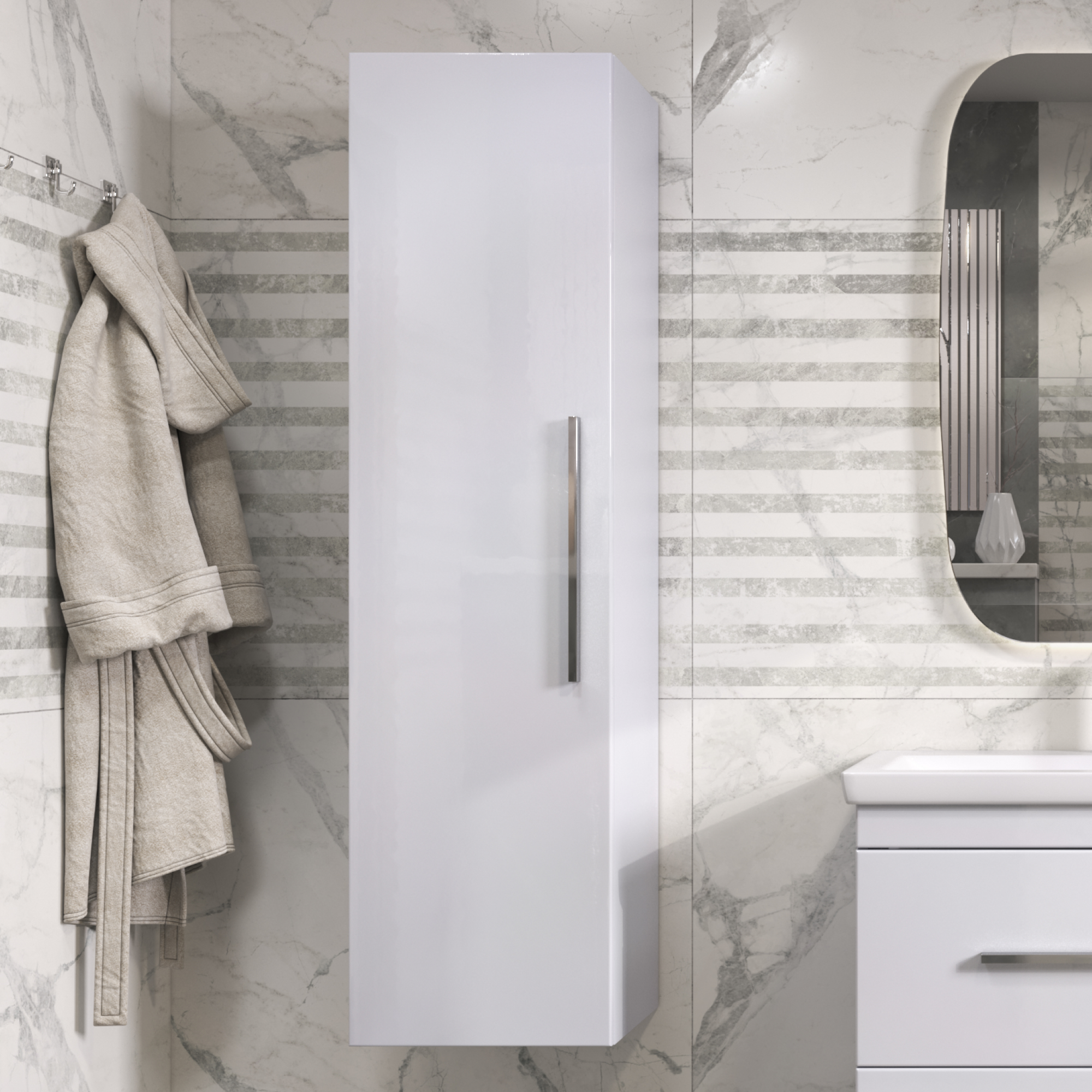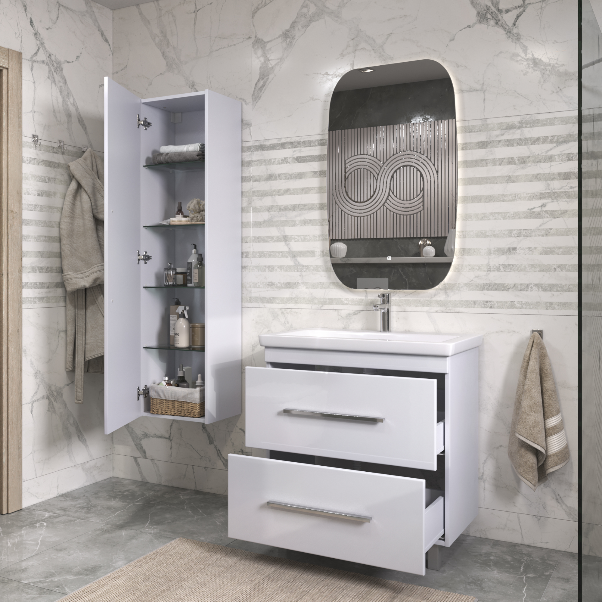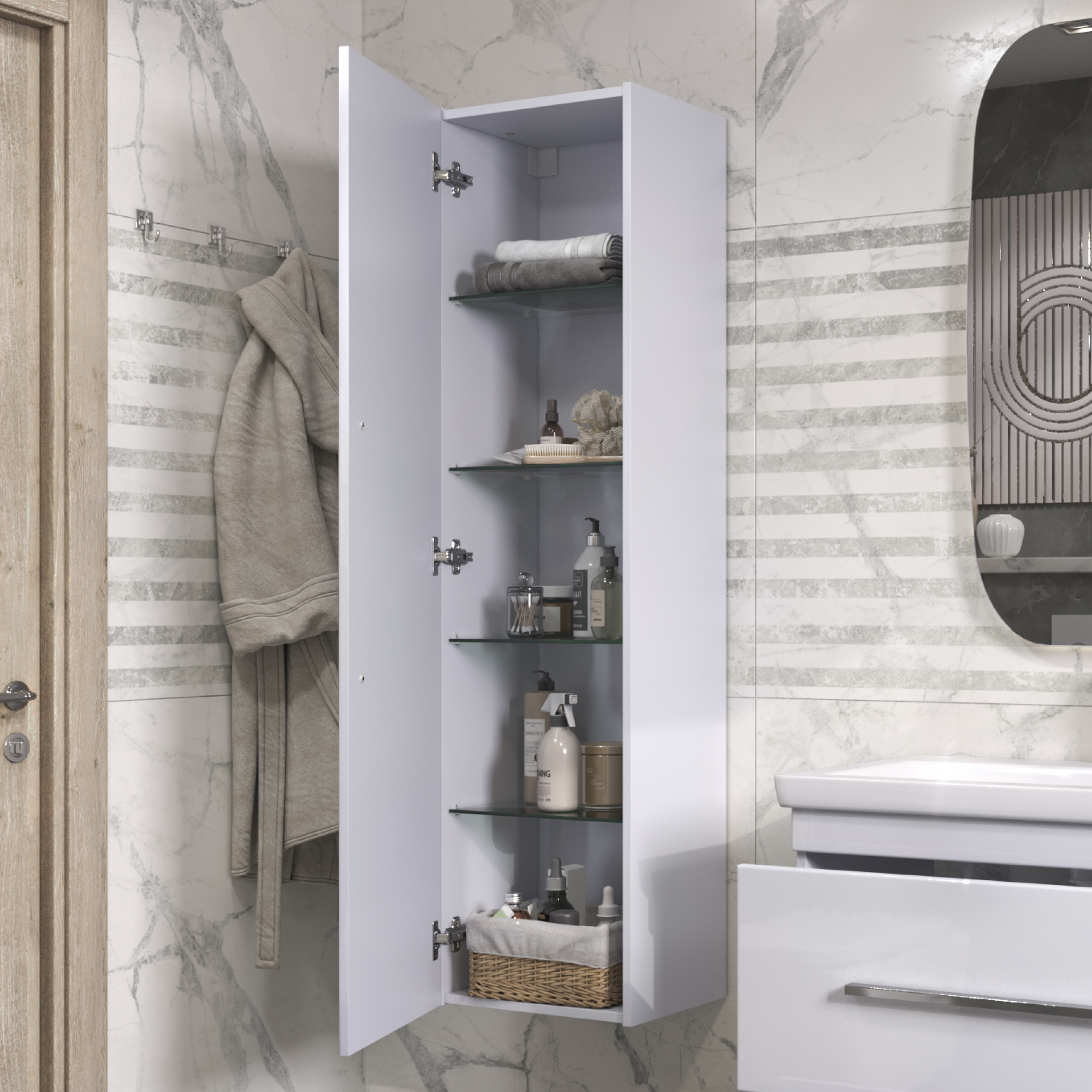 Шкаф-пенал VIGO Land 400 мм белый (022). Комплектация: корпус шкафа, 1 дверца, 4 стеклянные полки, ручка металлическая хромированная
