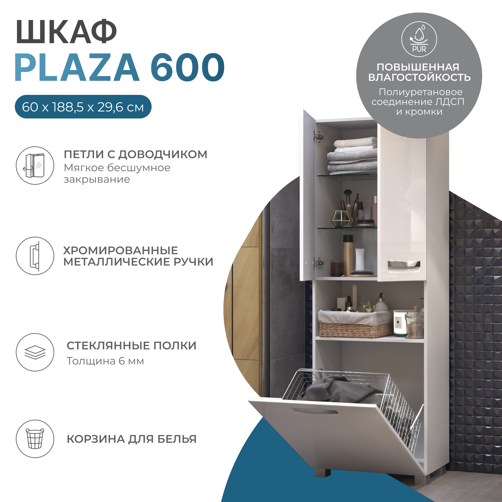 Пенал Plaza 60, с бельевой корзиной