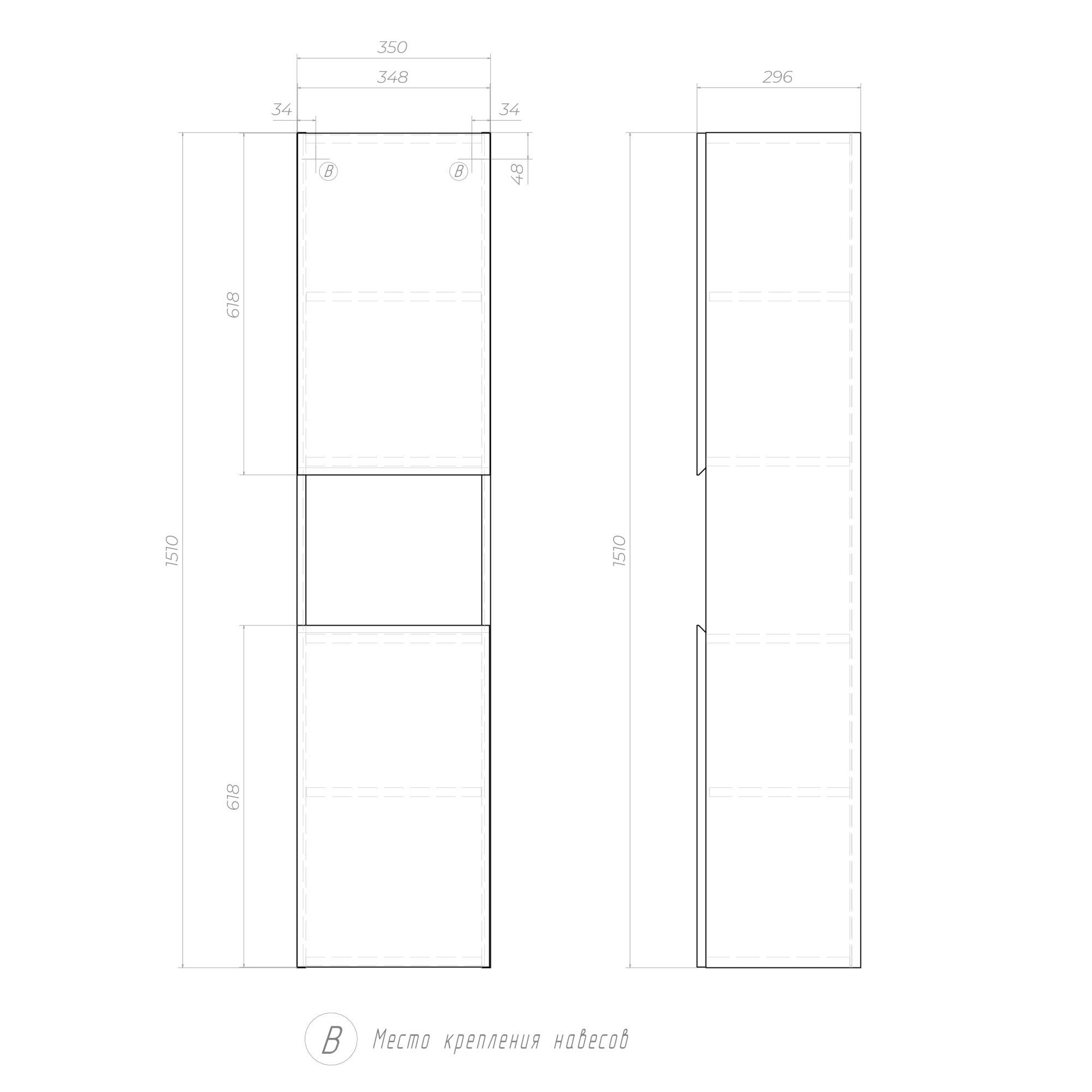 2 дверцы, петли с механизмом доводчика, 4 полки ЛДСП, интегрированная ручка, 2 навеса