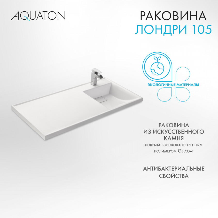 Раковина 1 шт., Кронтштейн - 1, выпуск - 1, крышка выпуска -1. Рекомендовано устанавливать на мебель Лондри