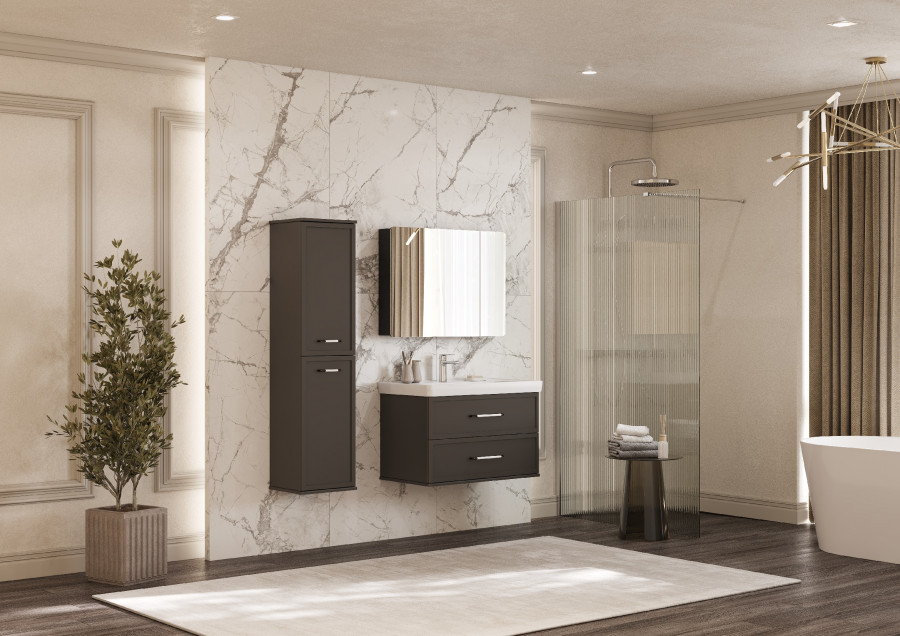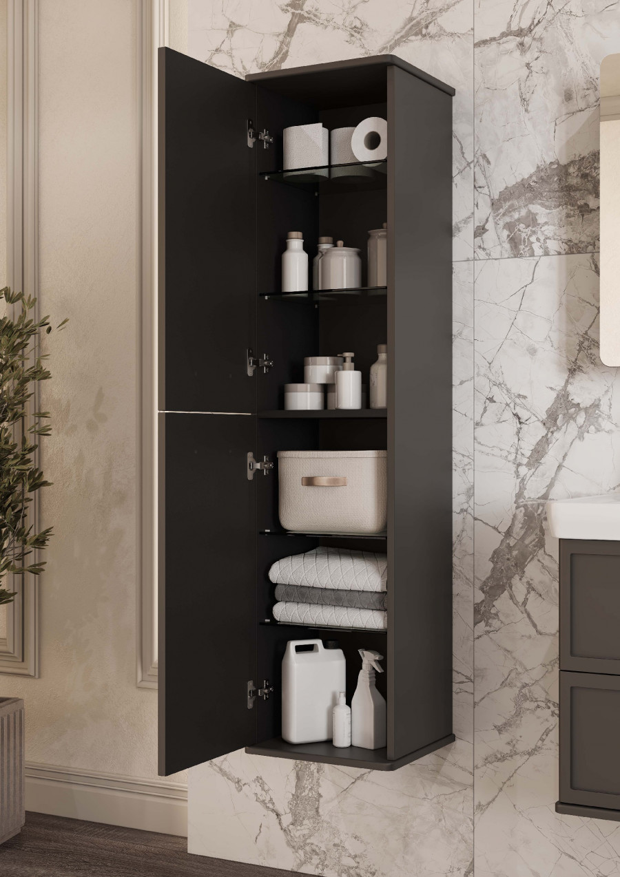 Шкаф-колонна- 1шт., регулируемый навес - 2, ручки - 2, полки стеклянные - 4, фасад- створка -2 (петли с интегрированной системой плавного закрывания)