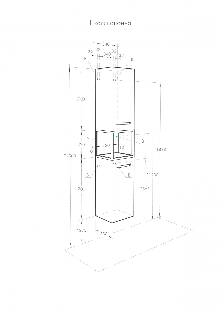 Шкаф навесной- 1шт., Регулируемые навесы - 2, фасад - 1 (петли со встроенным доводом), ручка - 1, полка - 1