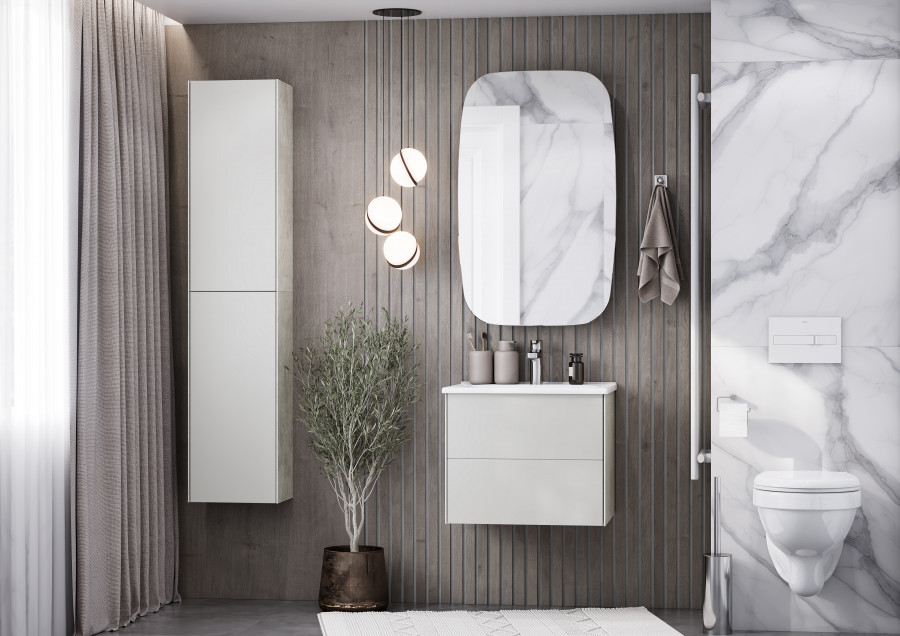 Дополняет коллекцию предметов мебели Сохо шкафчик в созвучном дизайне: боковые стенки ВЛДСП слэйт, фасад - плита МДФ в пленке цвете галька серая. Внутри две регулируемые полки из ламинированной влагостойкой ДСП в цвете антрацит - перекликаются с внутренним оформлением ящиков тумб коллекции Сохо. Навесной шкафчик имеет как левую, так и правую ориентации - достаточно лишь перевернуть изделие на 180 градусов. При желании также можно собрать полноценную колонну из двух навесных шкафов.