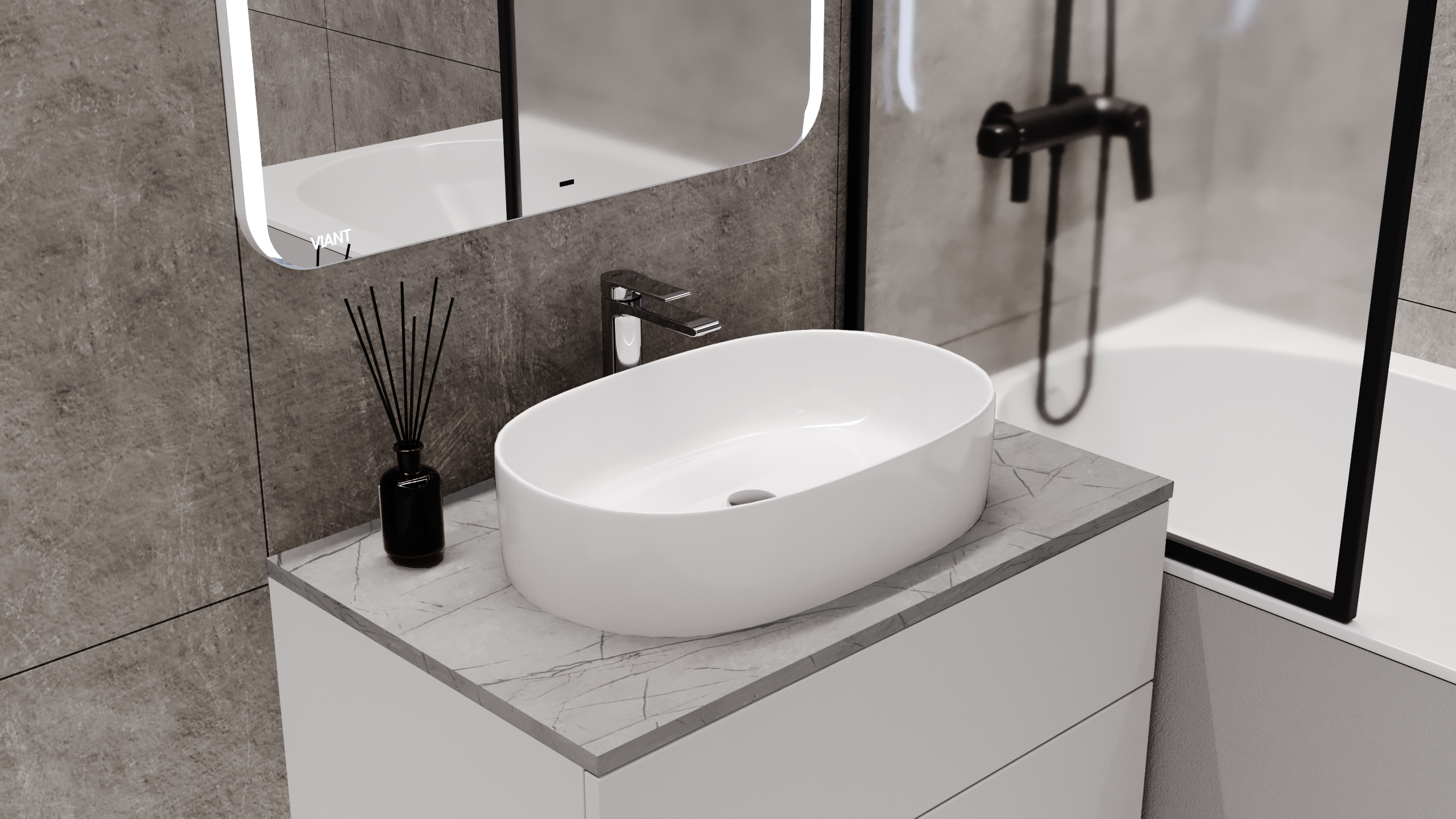 Столешница VIANT Neo. Цвет: антик мрамор, размер: 800х460х20 мм. Артикул: VNEO80MRAN-STMDF. Монтаж: на тумбу/ на кронштейн.