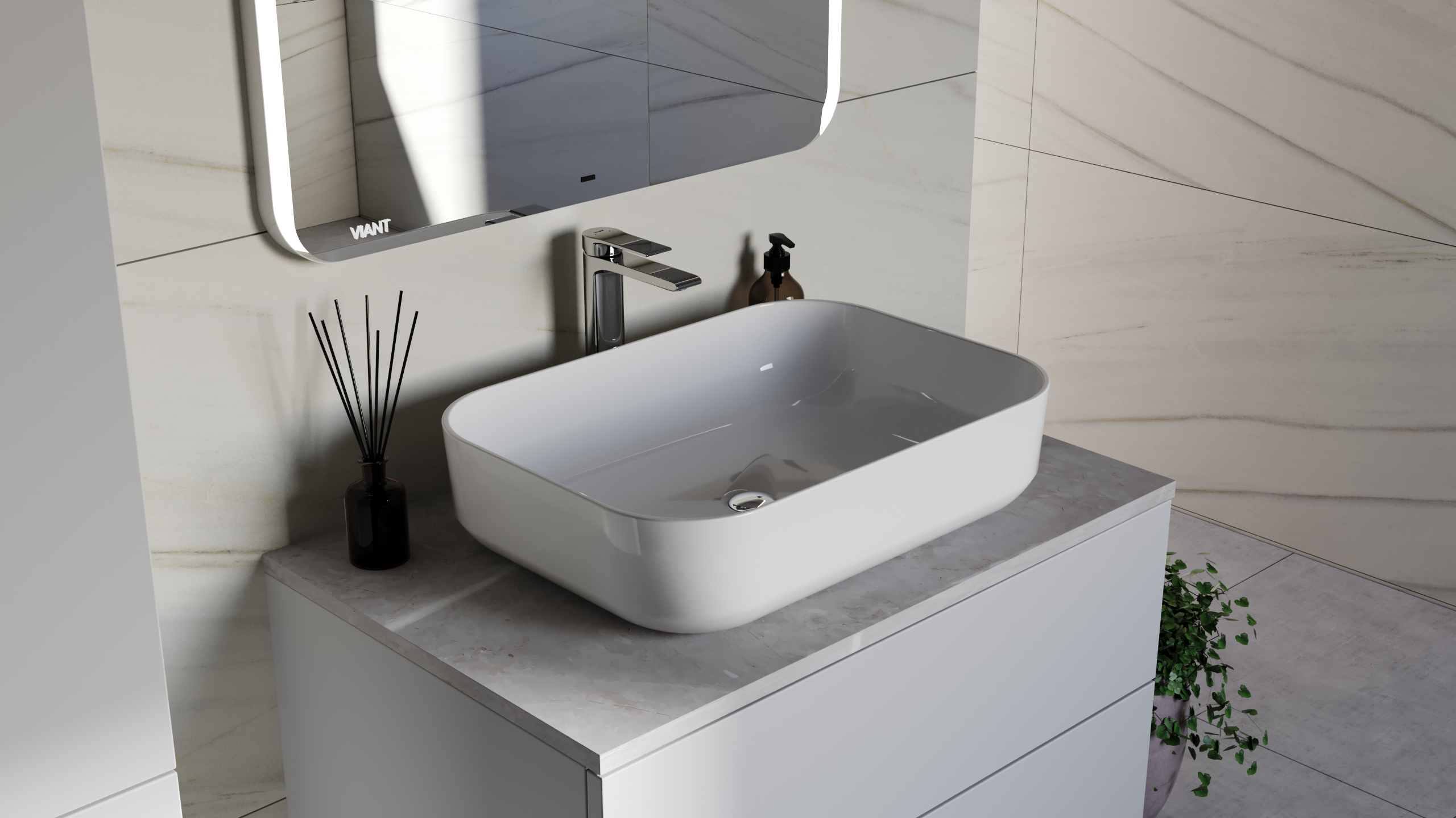 Столешница VIANT Neo. Цвет: бежевый мрамор, размер: 800х460х20 мм. Артикул: VNEO80MRBG-STMDF. Монтаж: на тумбу/ на кронштейн.