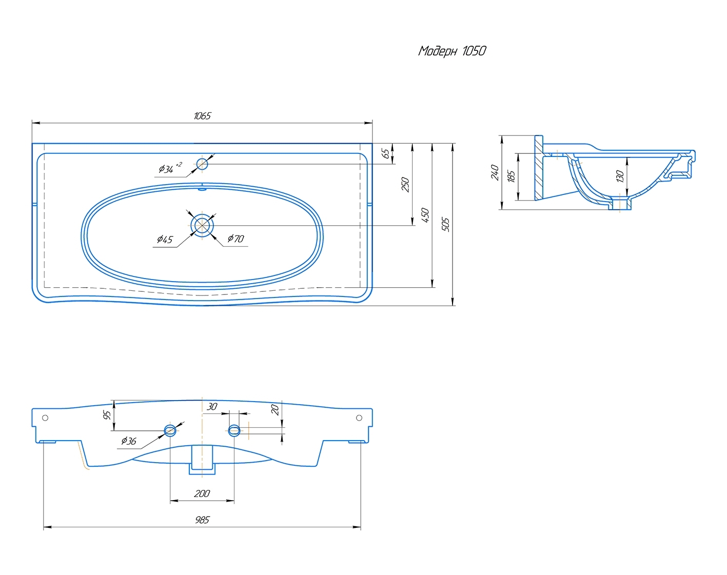Раковина KIROVIT Модерн 1050 мебельная, цвет белый. Артикул: Вн Крв32. Штрихкод (артикул производителя): 4640021063583. Комплектация: умывальник, хромированное кольцо для переливного отверстия