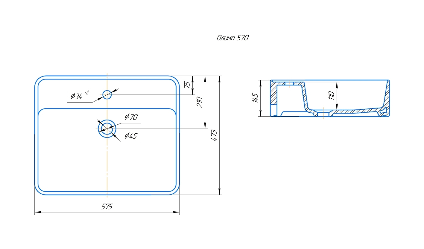 Раковина KIROVIT Олимп 570 мебельная, цвет белый. Артикул: Вн Крв139. Штрихкод (артикул производителя): 4630055550401. Комплектация: умывальник