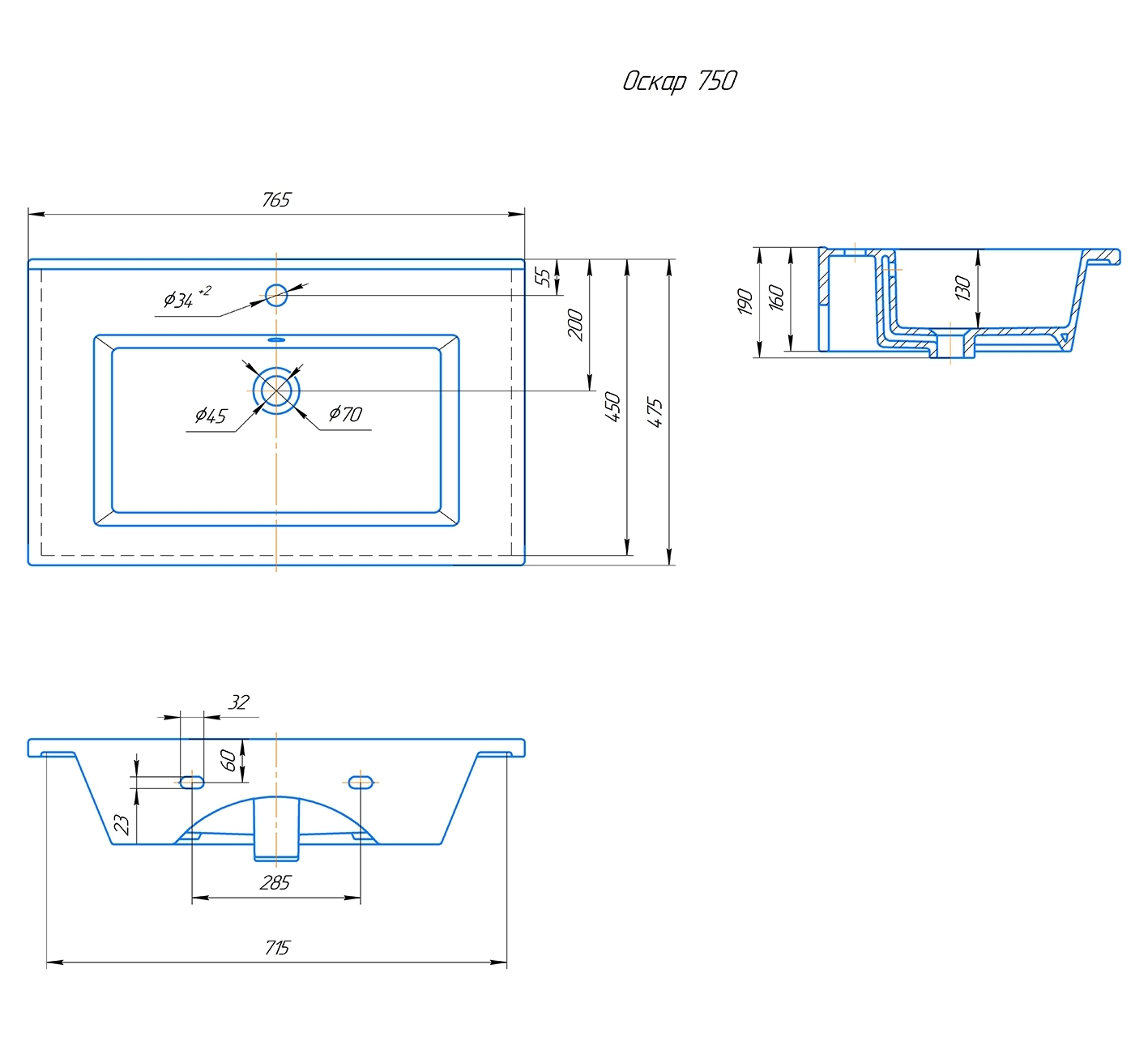Раковина KIROVIT Оскар 750 мебельная, цвет белый. Артикул: Вн Крв28. Штрихкод (артикул производителя): 4640021062210. Комплектация: умывальник, хромированное кольцо для переливного отверстия