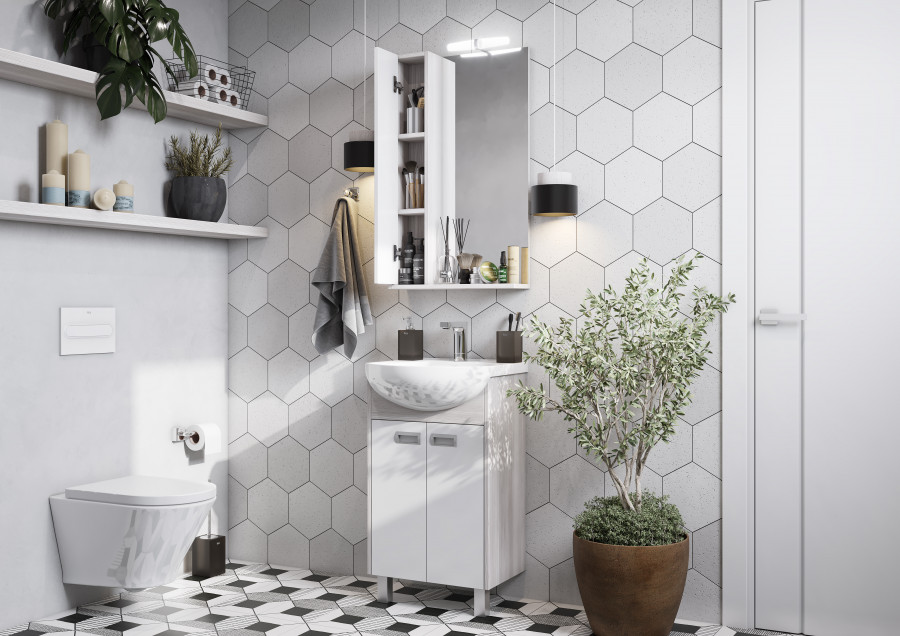 Зеркальный шкаф БЕККА 50, белый, дуб сомерсет