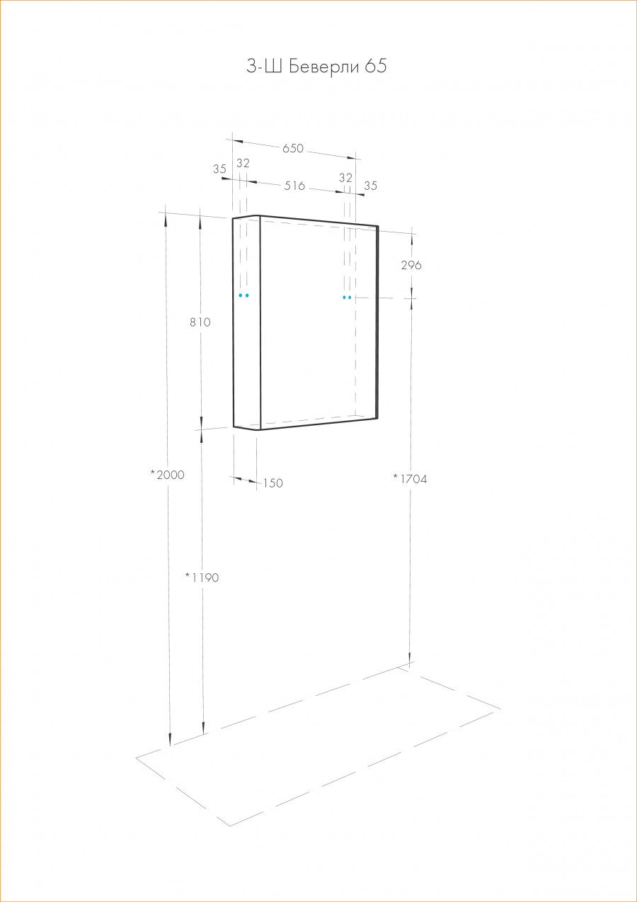 Шкаф- 1 шт., Зеркальный фасад створка - 1 шт., полка вкладная стеклянная - 2 шт., навес - 2 шт., петли с интегрированной системой плавного закрывания - 3 шт.