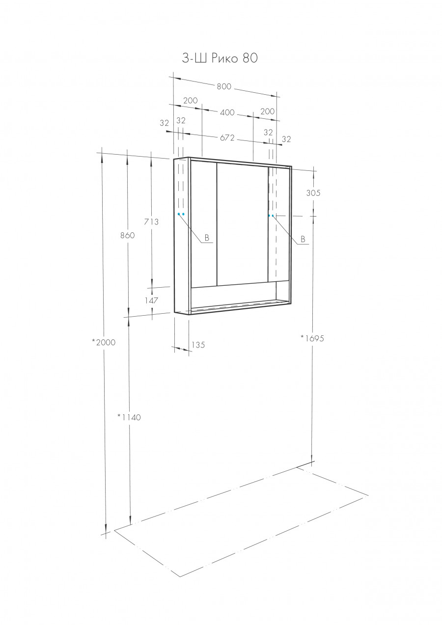 Зеркальный шкаф РИКО 80, белый, ясень фабрик