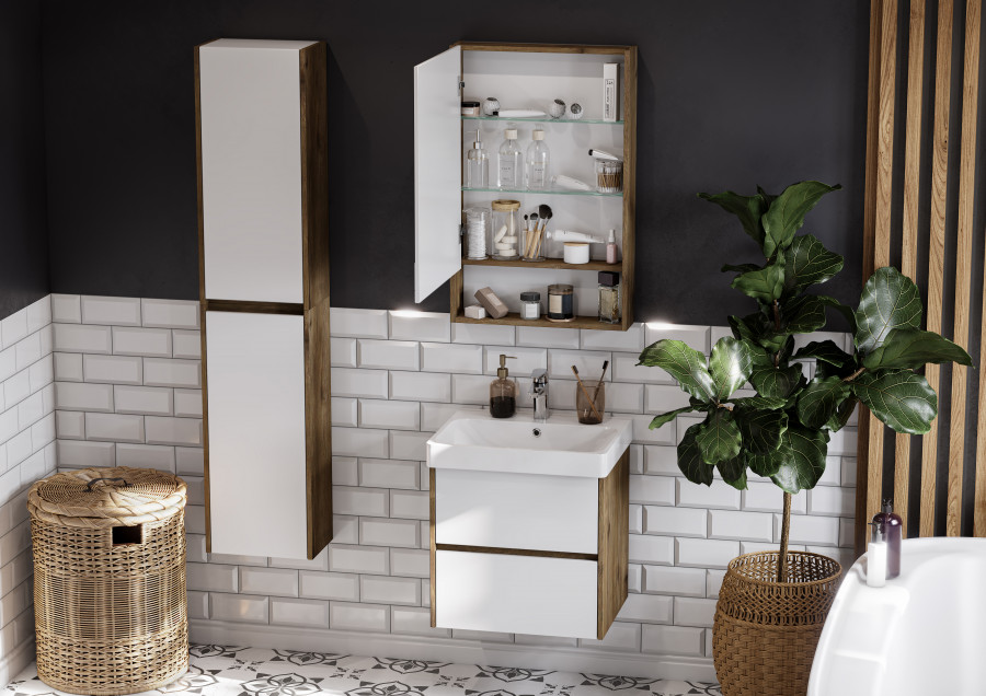 Зеркальный шкаф СКАНДИ 55, белый, дуб рустикальный