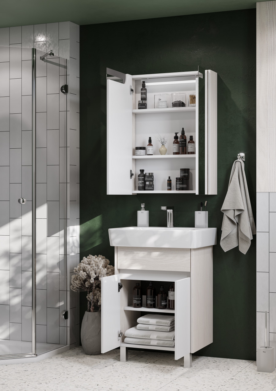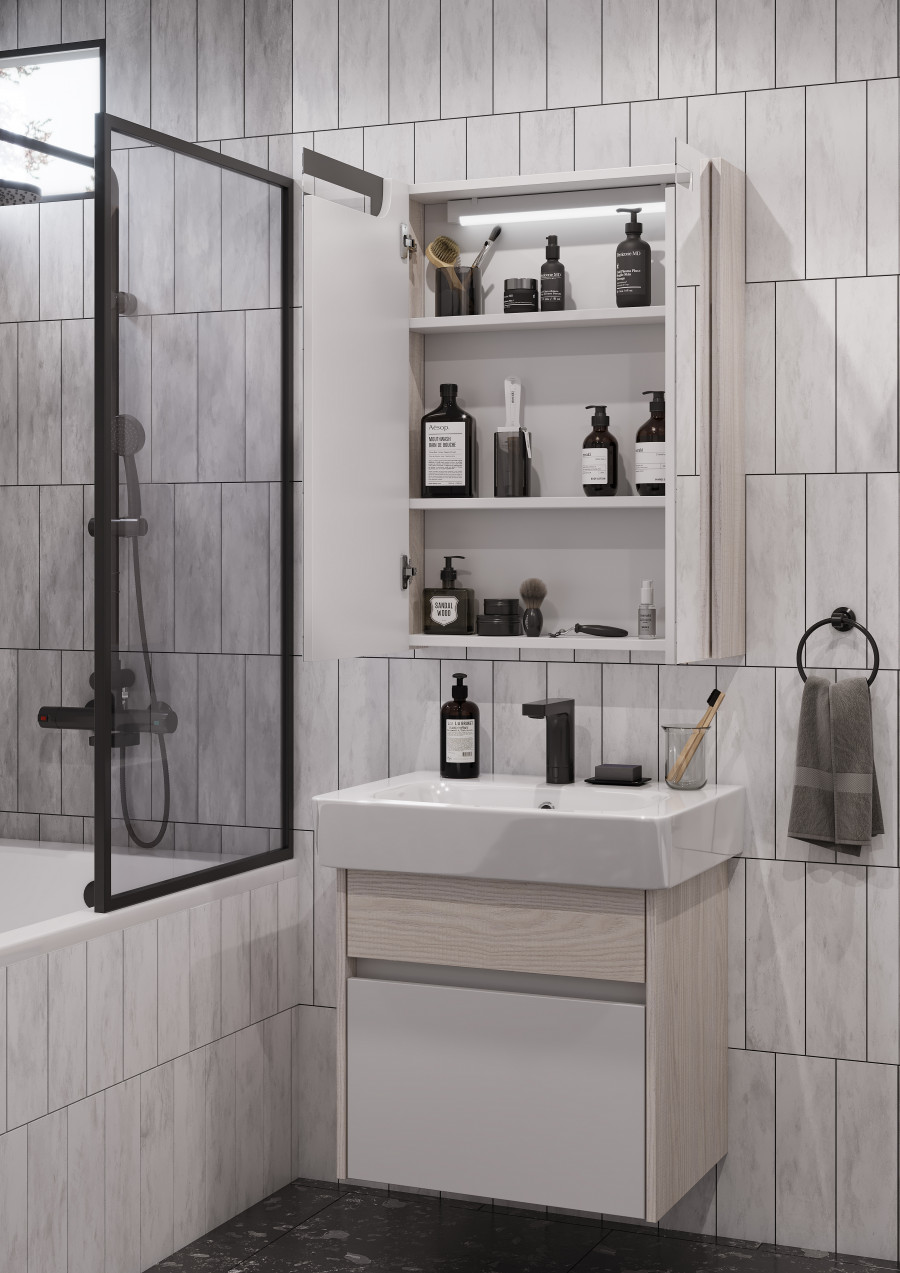 Зеркальный шкаф ВЕРДИ 60, белый, ясень фабрик