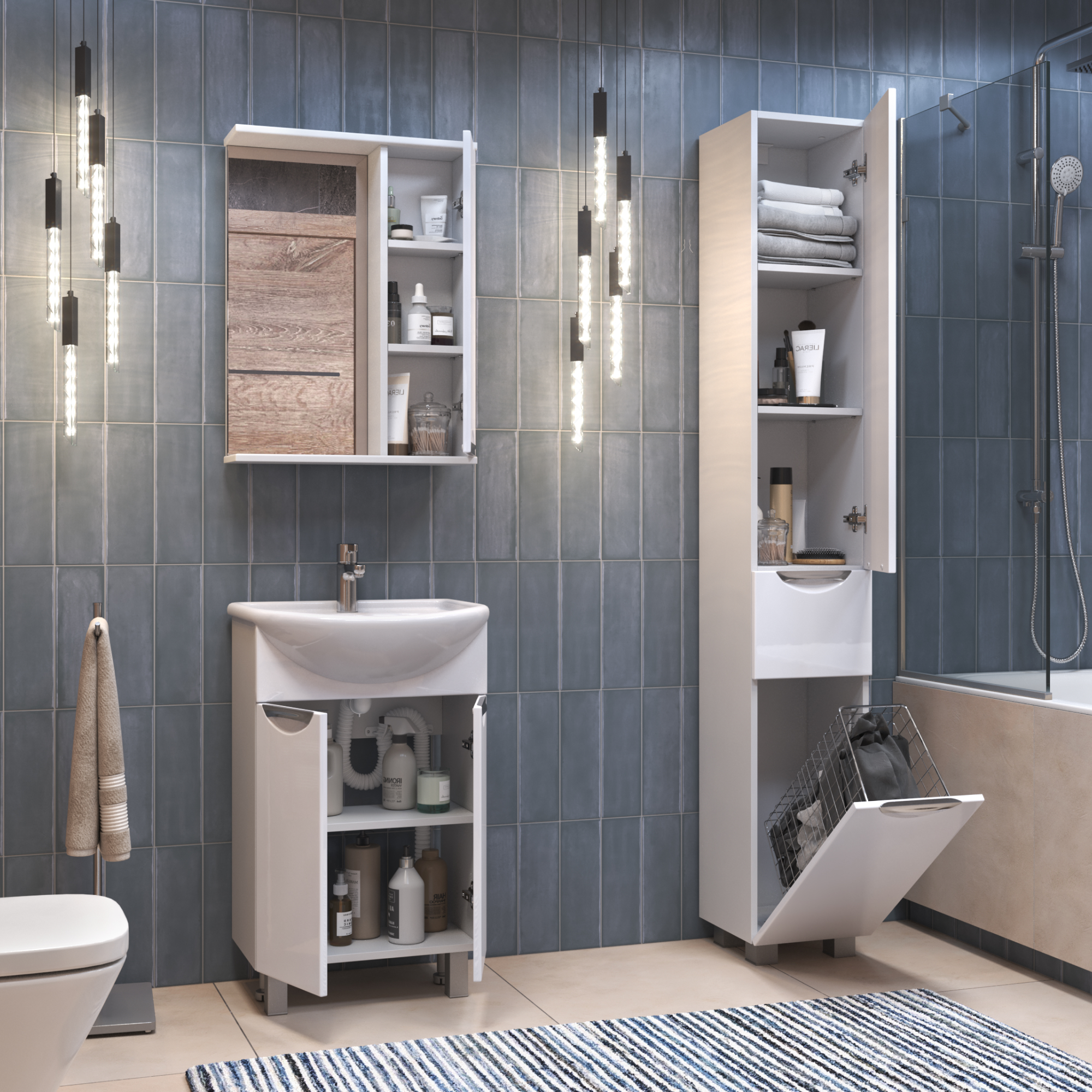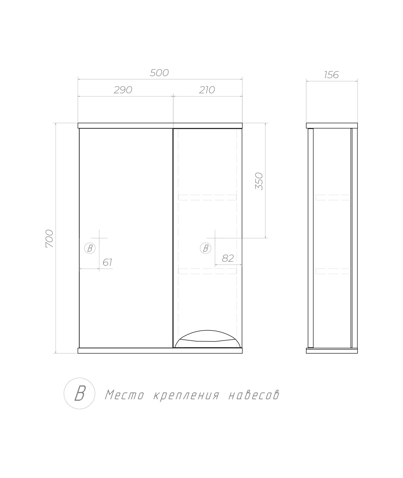 Левое/правое исполнение шкафчика; 2 полки ЛДСП;