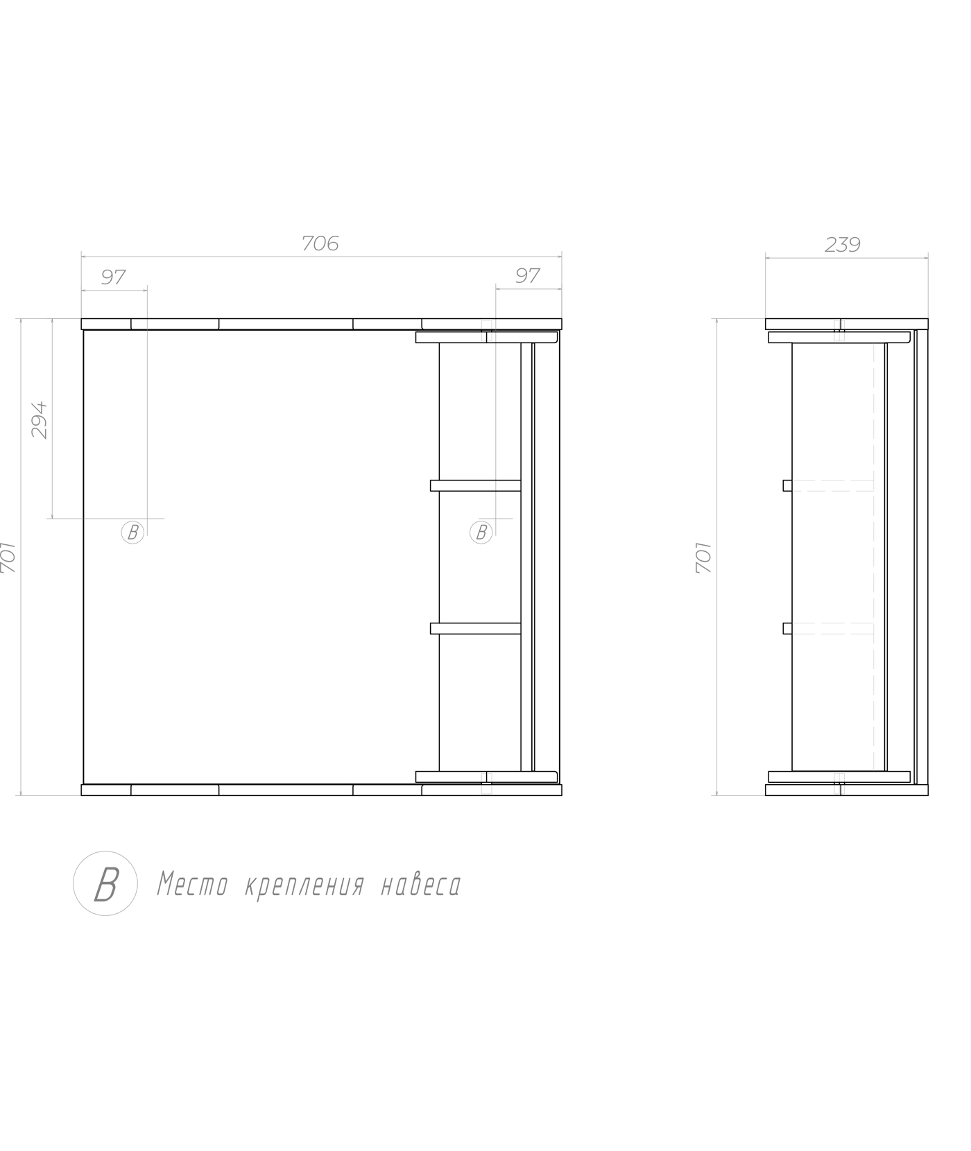 Зеркало с полками VIGO Callao 70 подвесное белый (zsh.CAL.70.El)