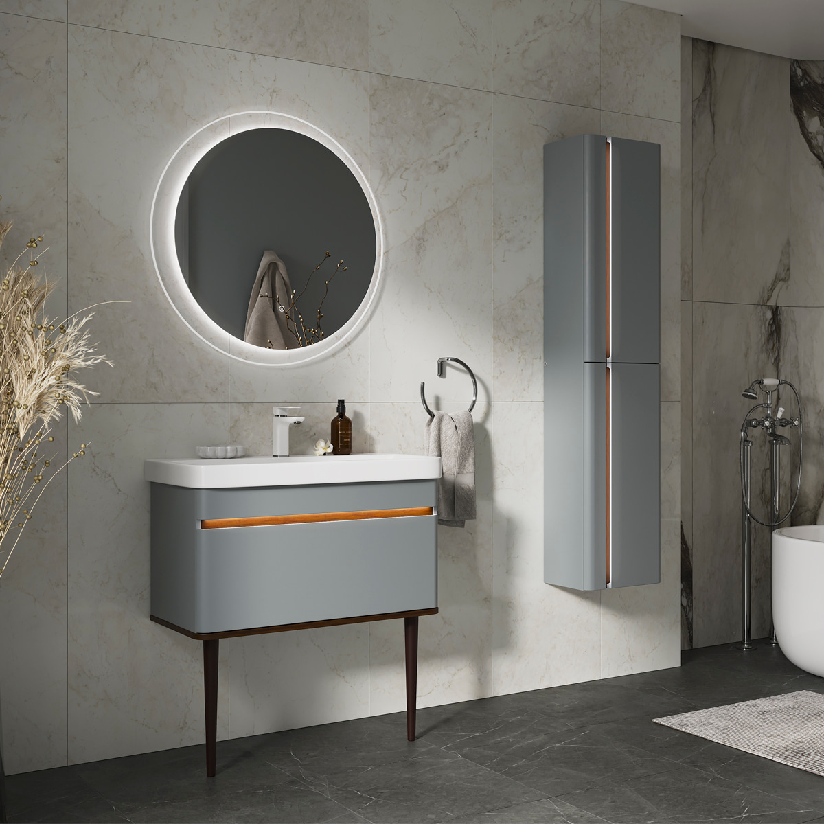 Зеркало с двойной открытой ореольной (за зеркальным полотном и за прозрачным стеклом) подсветкой «Бегущие огни». Ореольная LED-подсветка с холодной (5000К) цветовой температурой «Бегущие огни» работает за счет последовательного включения и выключения светодиодов на ленте, создавая динамические световые эффекты. Управление осуществляется через сенсор. Корпус зеркала выполнен из МДФ в пленке ПВХ в цвете Мейджик.