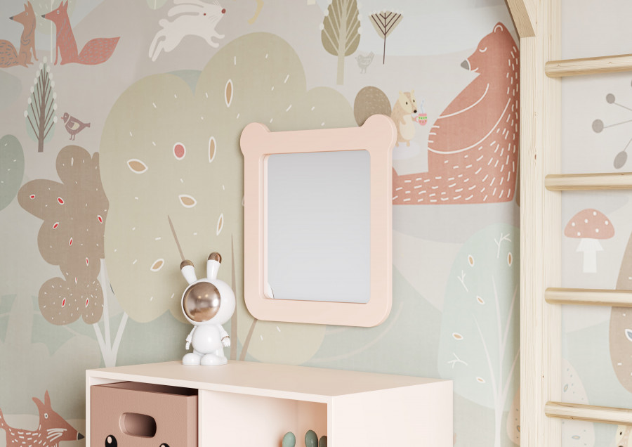 Зеркало КАСПЕР МИШКА, квадратное, розовый матовый