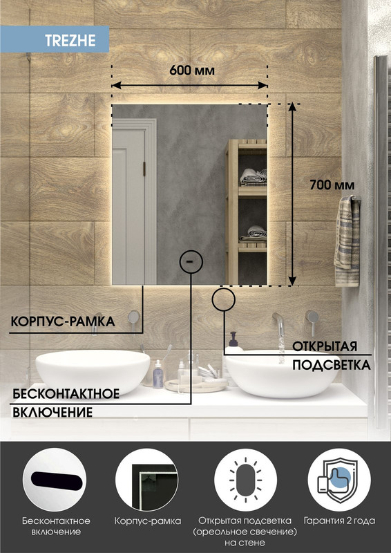Зеркало Trezhe Led 600х700 бесконтактный сенсор