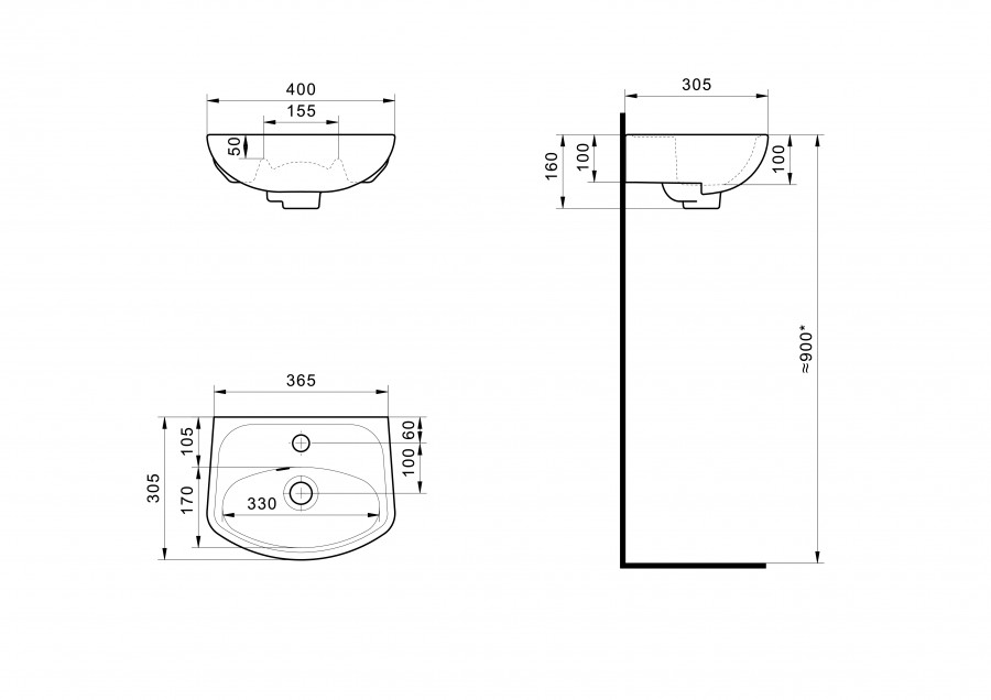АНИМО Умывальник 40 см., хр.кольцо, крепление, САНТЕК