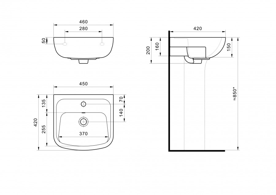 ЛОНГИ Умывальник 45см,белый,САНТЕК