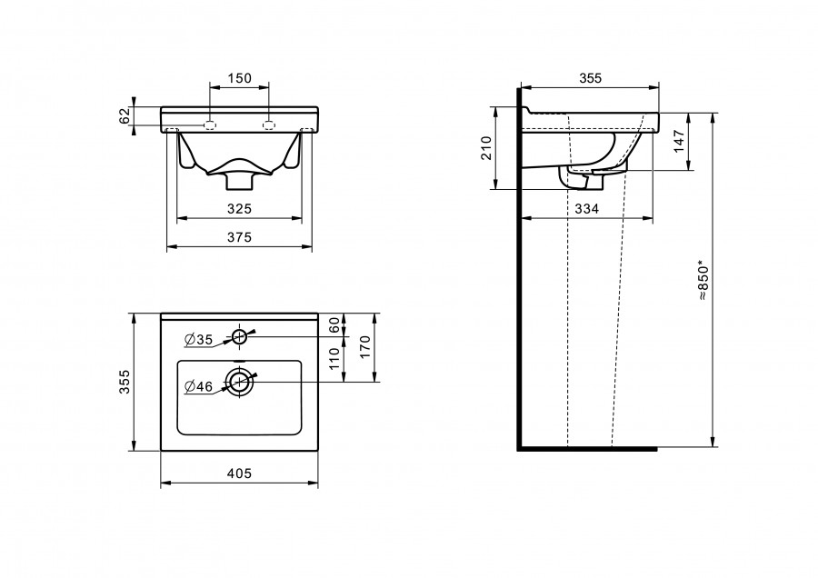 Умывальник Визит-40 (405х355) с переливом белый SANTERI