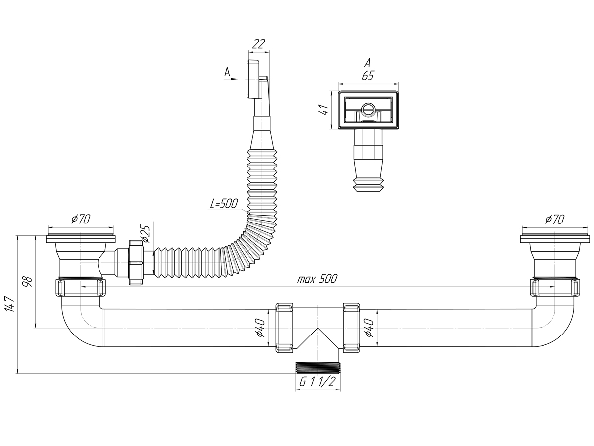 Набор для двойного сифонас переливом, ANI PLAST