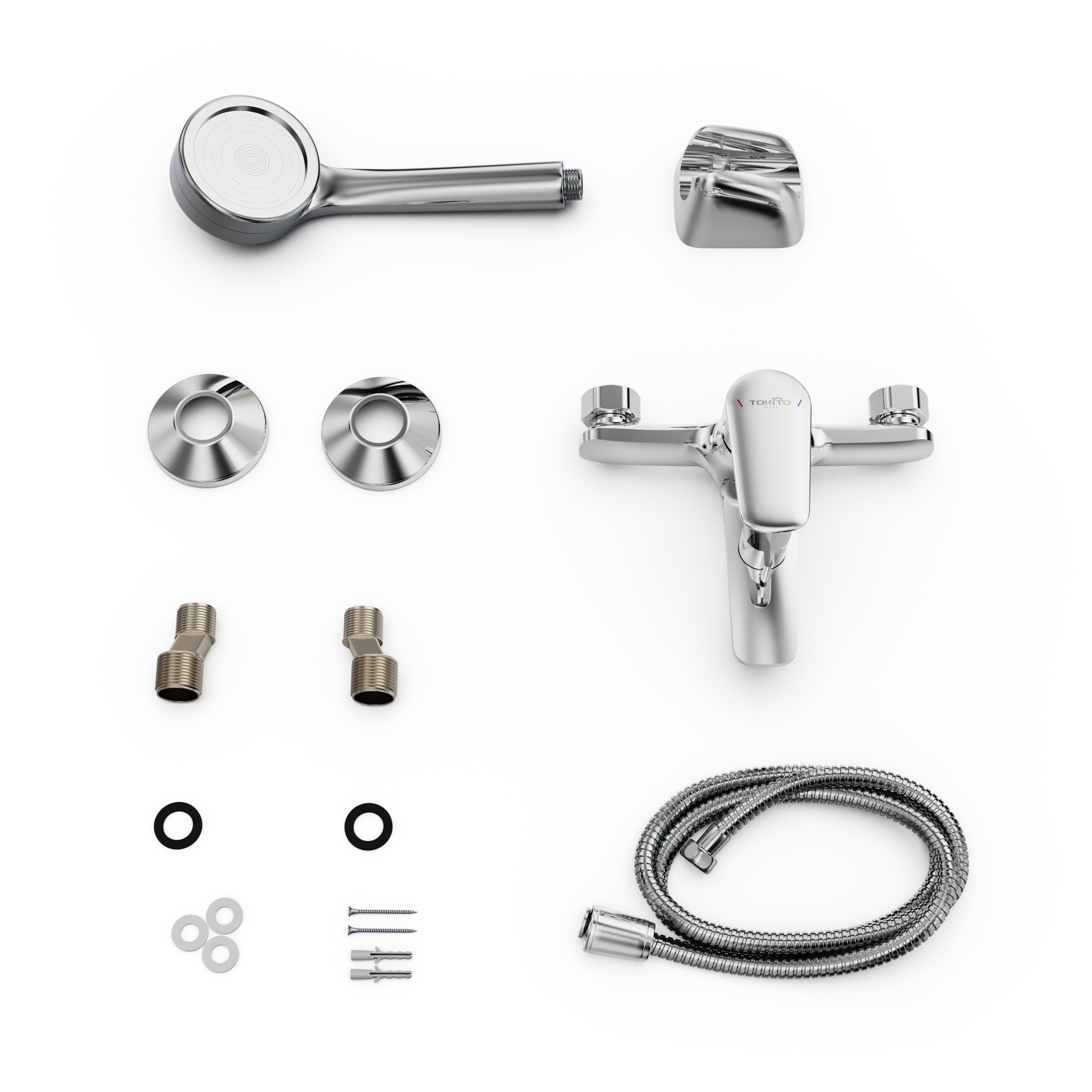 Для поклонников дизайнерских решений в классическом стиле создана коллекция HAPPO от известного японского производителя сантехники TOKITO. Изящные линии, универсальный дизайн и истинное качество - всё это Вы сможете найти в смесителях от TOKITO. Смеситель для ванной с коротким изливом обладает прекрасной износостойкостью и качественным хромовым покрытием, которое будет радовать Вас своим ослепительным блеском на протяжении всего срока службы. Компания TOKITO при изготовлении сантехнических элементов использует безопасные, экологичные материалы и современные технологии, благодаря чему гарантийный срок на изделия составляет 7 лет, а реальный срок службы достигает 20 лет. Универсальный и функциональный кран для ванной станет оригинальным дополнением к дизайну ванной комнаты как в классическом, так и в современном стиле. Надежный встроенный аэратор ABS Coin позволит экономично расходовать воду. В комплект входят латунные эксцентрики, шланг хромированный из