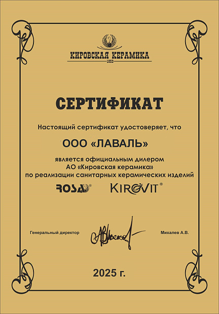 KIROVIT, ROSA Сертификат дилера ООО ЛАВАЛЬ