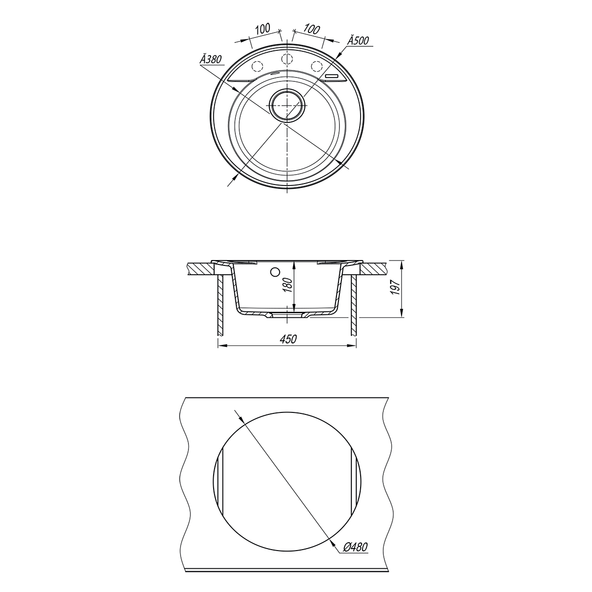 Кухонная мойка Lemark SULA 500 врезная круглая из кварцгранита, Антрацит