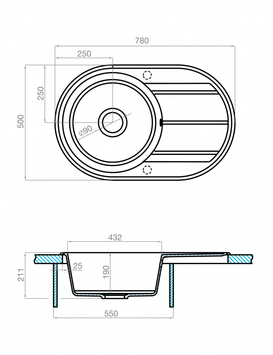 Мойка для кухни Амира 780x500x211 мм, круглая с крылом, кофе