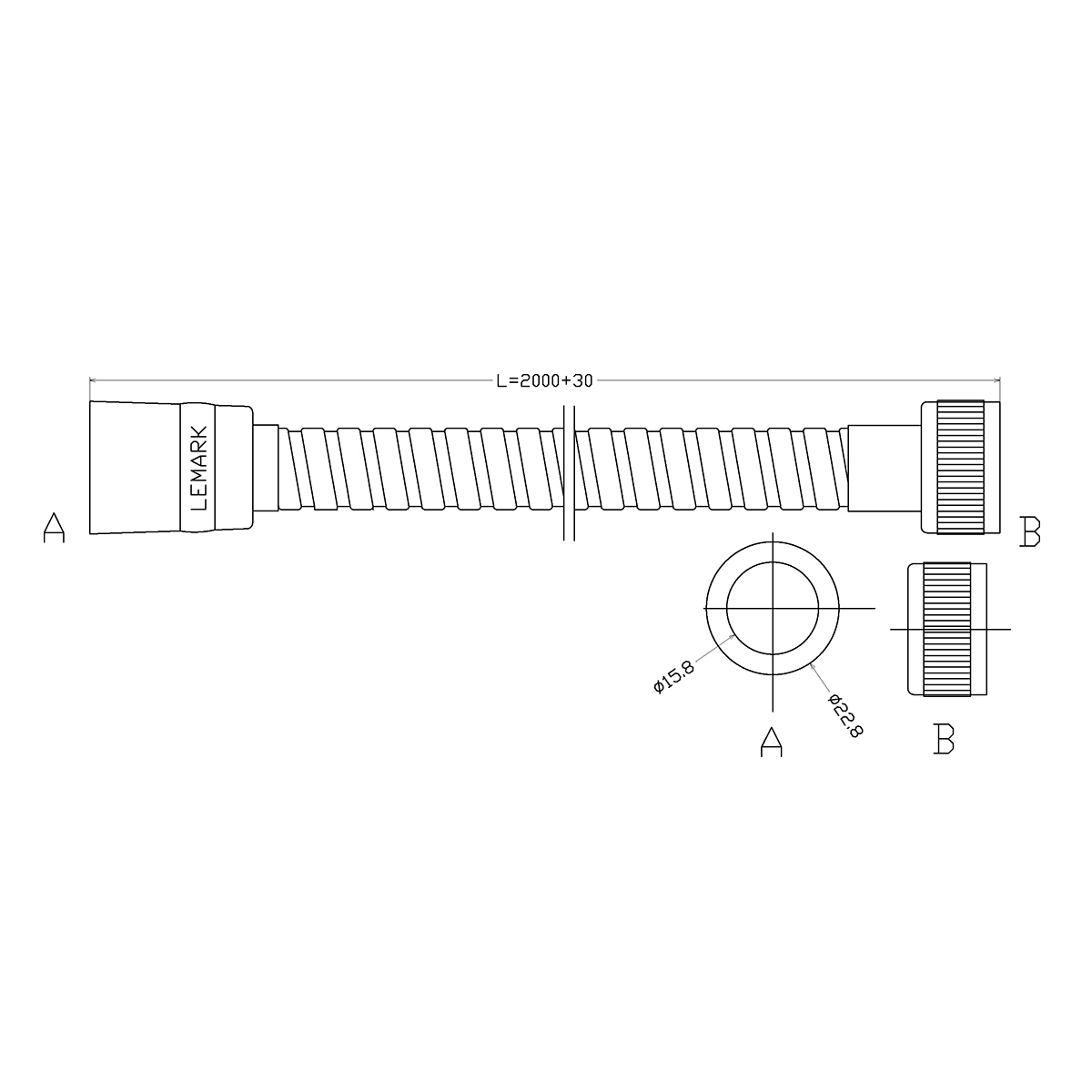 Шланг душевой двухзагибный 2 м, стальной, хром. LEMARK