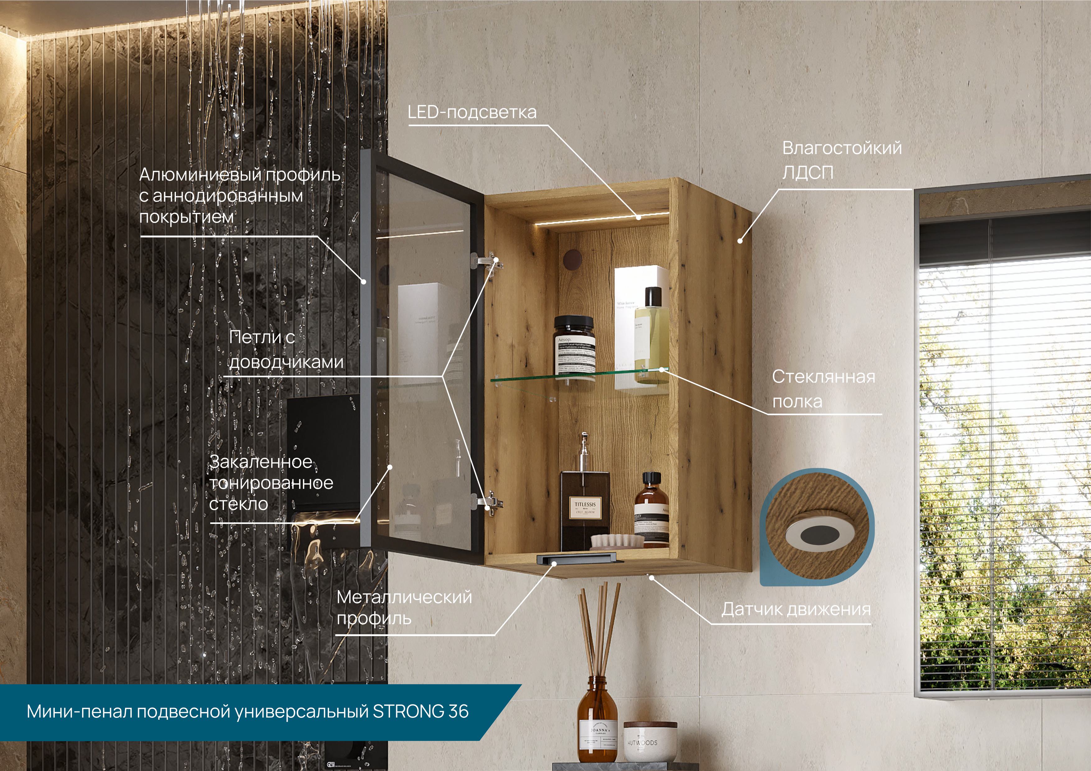 STRONG создаёт атмосферу современного санузла, где визуальная строгость сочетается с уютом. Эта коллекция подойдёт тем, кто ценит порядок, долговечность, минимализм и выразительные материалы. Здесь нет ничего лишнего - только чистая функциональность и уверенная эстетика, которая будет актуальна долгие годы.